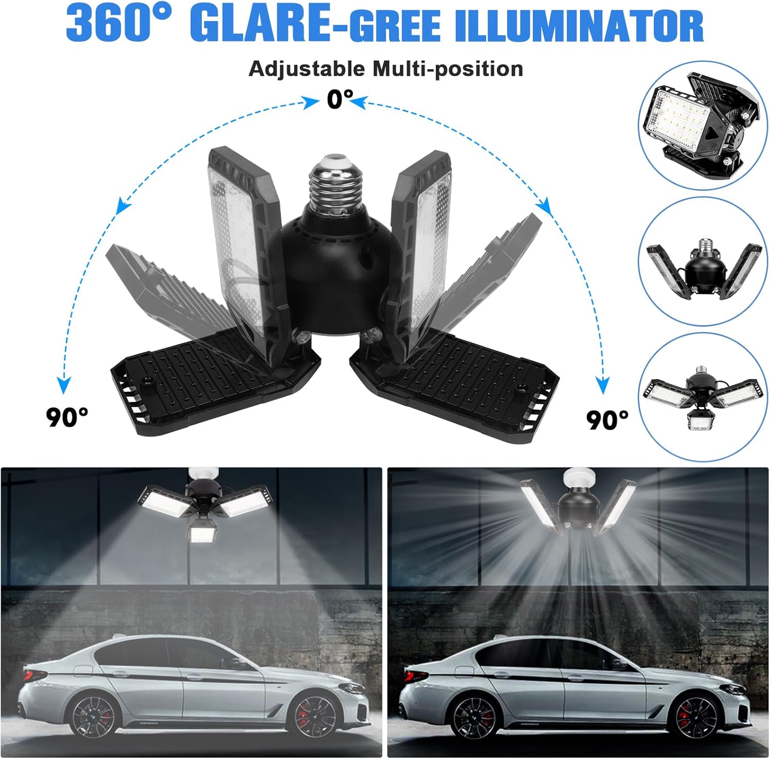 This Foldable garage light stands out for flexibility, energy use, and ease of setup. It offers clear, wide coverage through multiple panels that adjust independently. Installation takes seconds with standard screw-in sockets, eliminating the need for tools.