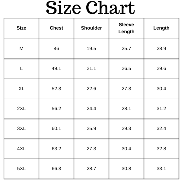 Size Chart (inches):